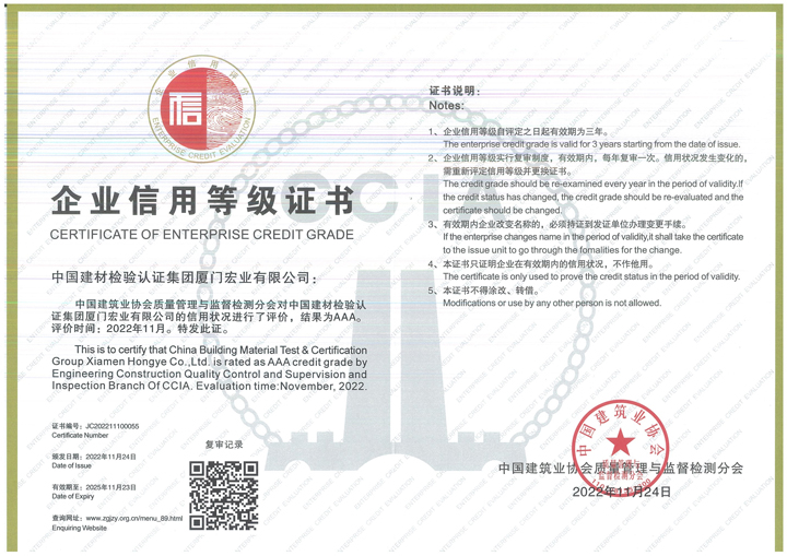建筑業(yè)AAA級信用企業(yè)(檢測機構)榮譽證書